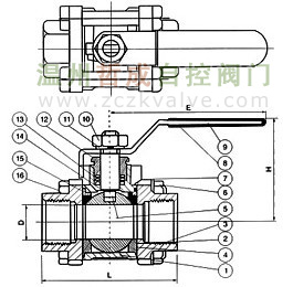 三片式球阀属于手动类球阀。球阀是用带有圆形通道的球体作启闭件,球体随阀杆转动实现启闭动作的阀门。球阀的启闭件是一个有孔的球体,绕垂直于通道的轴线旋转,从而达到启闭通道的目的。球阀主要用于截断或接通管道和设备介质,也可用于流体的调节与控制,三片式球阀流体阻力小,结构简单,体积小,重量轻,紧密可靠,操作维修方便,不会引起阀门密封面的侵蚀,适用范围广。 三片式球阀特点: 应用规范公称压力:1.6-6.4MPa 适用温度范围:-20~232℃~350℃ 适用介质:水、油、气及某些腐蚀液体(W.O.G)螺纹类型:G·NPT.BSPT.BSP.DIN259/2999 三片式球阀价格,三片式球阀厂家,三片式球阀报价。 三片式球阀结构图: