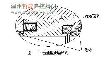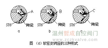 陶瓷球阀是适用于电厂、矿山、冶金、化工等行业的灰浆和干灰管路中,用于液固、气固两相介质输送系统中做启闭装置;阀门阀座密封面的结构形式,直接影响到阀门的质量和使用寿命。由于普通陶瓷球阀的阀座密封面通常采用PTFE材料制作,阀门开启过程中,因颗粒对阀座密封面的撞击,PTFE密封面很容易被擦伤,密封面被破坏。阀门出现严重的内部泄露,阀体内腔产生结垢。严重时,阀门的启闭都很困难,进一步地发展阀门就失去作用。经过走访用户得到这一信息;通过对失效阀门地分析,改进了阀座密封结构的设计,解决了陶瓷球阀的内部泄漏问题。