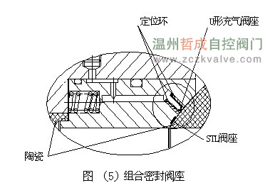 ![]() 3. 结构设计 根据现场的观察和现场实际情况分析判断以及我们多年来对球阀积累的经验,对阀座密封面进行了改进。首先改进阀座密封面为硬密封加软密封组和而形成的组合密封;改进后的阀座密封面,硬密封能清洁密封面,将颗粒和杂质从球体密封面上清除;软密封能将球体的微观不平度填平,杜绝干灰的渗透。软密封阀座我们采用充气式U形环的软密封阀座;U形环是用侧环定位于浮动支架套筒的斜U形槽内。U形软密封阀座是由氟橡胶密封材料制成。阀门在启闭过程中,U形软密封阀座密封面缩入槽环内;并且密封面的位置也不是正面面对介质,密封面露出的面积很小,所以,介质对密封面的冲击、磨损也很小,有效的防止阀座的内部泄漏,极大的延长阀门的使用寿命,提高了阀门的可靠性。图(5)是组合密封阀座图。