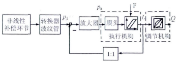 图3 智能阀门定位器反馈框图 (3)用DCS的调节输出的前/后,仅在前/后通道上,改变多点折线,仅用改变软件的方法亦可补偿改变控制阀的固有流量特性,仅用软件方法即可。