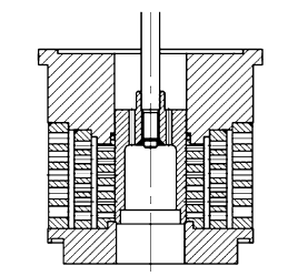 闪蒸和空化出现的先决条件是阻塞流的产生。产生阻塞流时的压差称为阻塞流压差Δp′。当Δp≤Δp′时,即可避免阻塞流及闪蒸空化的产生。多级降压时每一级降压的实际压差Δp均应小于阻塞流压差Δp′。以此作为初始判据,判断降压级数。 阻塞流压差 式中:p1为入口压力;FL为压力恢复系数;FF为临界压力比系数,且FF=0.96-0.28其中pC为热力学临界压力。根据多级降压原理,每一级压降按几何级数递减,即 式中n为理论降压级数. 图2中i为降压级数的序数(i=1,2,…,n),根据所示套筒降压级数确定流程,计算出当套筒级数为3级时每级分压降可满足Δpi<Δp′,理论上可避免阻塞流及空化现象的发生,故选定套筒降压级数为3级,如图3所示。