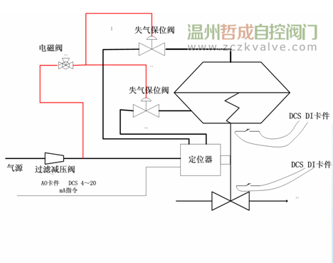 控制阀的三断保护 控制阀的三断保护指:断气源保护、断电源保护、断信号源保护。是满足工艺系统安全运行的重要保障。与电磁阀、保位阀、快速泄压阀等附件组合使用。