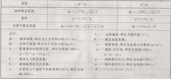 六 调节阀的额定流量按下表中公式计算,计算燃油的额定流量时应在流体额定流量公式中增加黏度修正系数。